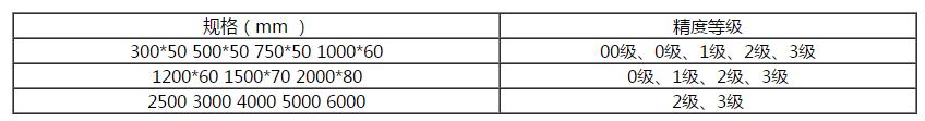 鑄鐵平尺的規(guī)格和精度等級:
